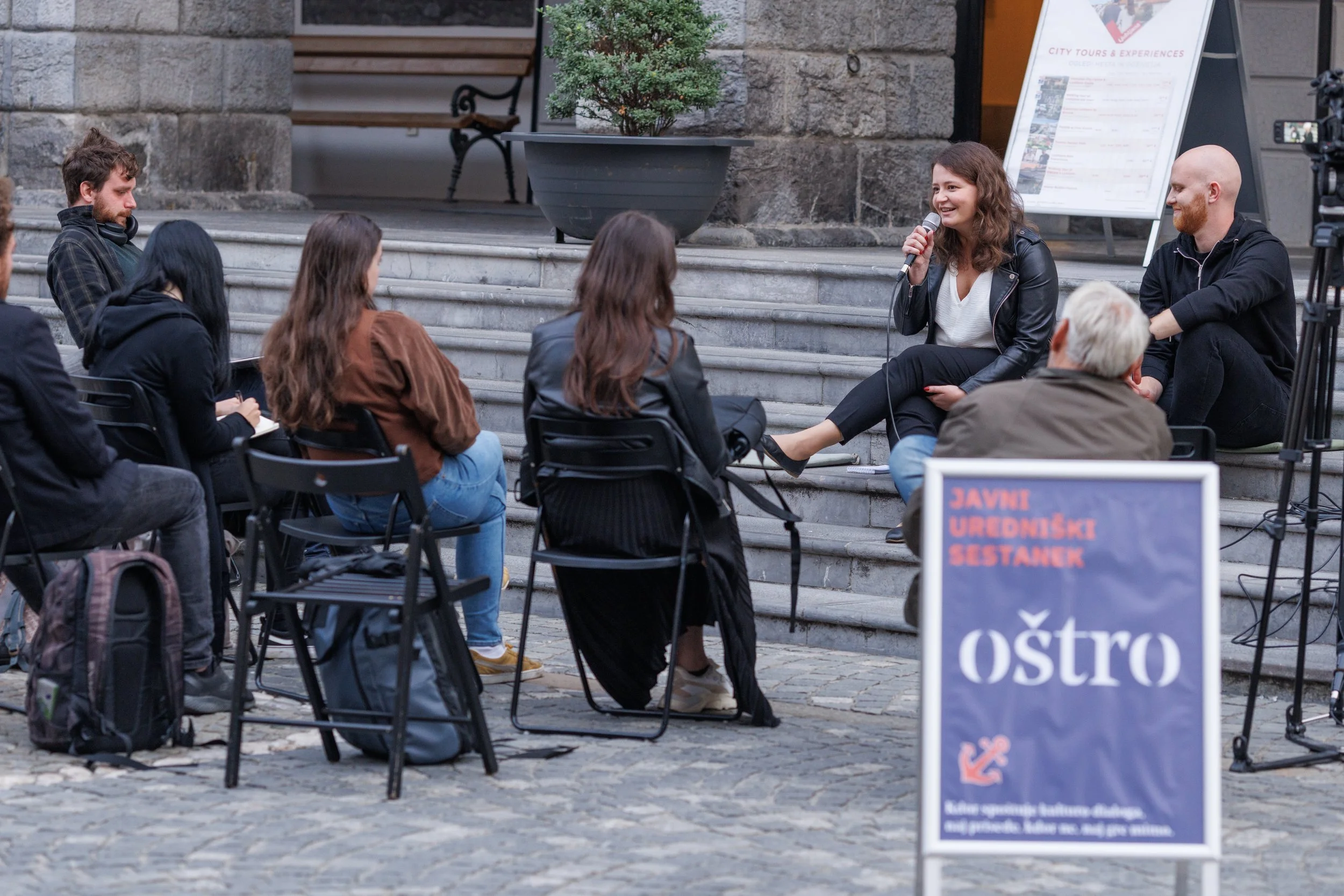 Na javnem uredniškem sestanku, ki je potekal pred mestno hišo v Ljubljani, je 9. oktobra ekipa Oštra predstavila preiskovalno zgodbo o oglaševalcih na dezinformacijskih portalih.