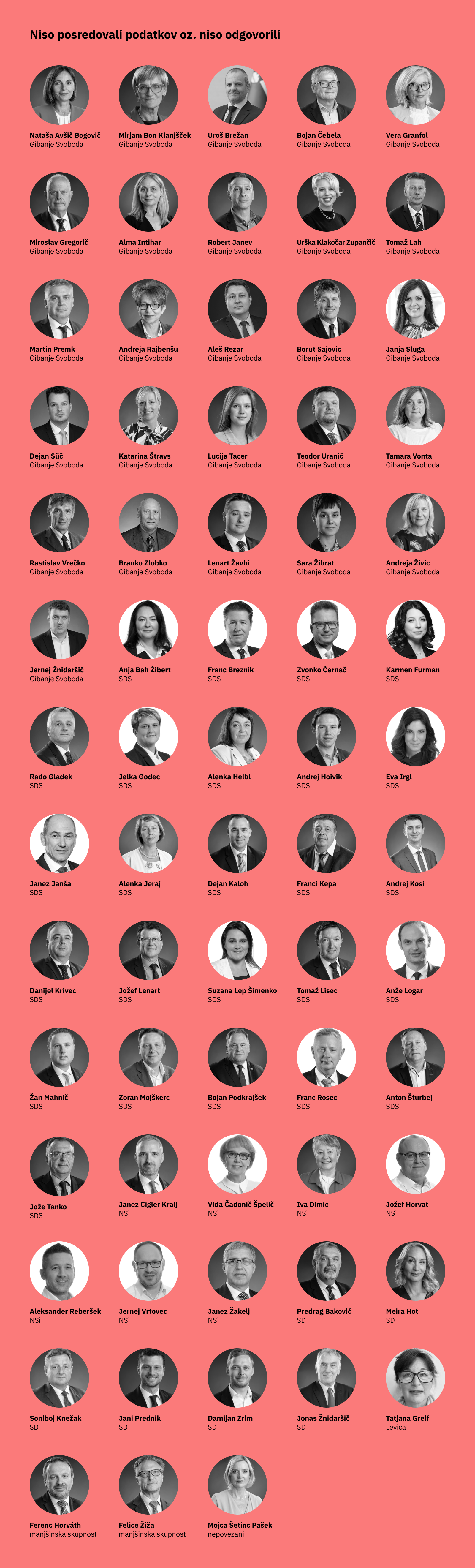 Poslanci in poslanke, na splošnih volitvah izvoljeni predstavniki ljudstva, so skupina političnih funkcionarjev, ki je bila najmanj odprta za sodelovanje z novinarji projekta Detektor premoženja. Le 15 odstotkov jih je bilo pripravljenih razkriti svojo premoženjsko kartico, še manj, 11 odstotkov, pa jih je odgovorilo na novinarska vprašanja, povezana z njihovim premoženjem.