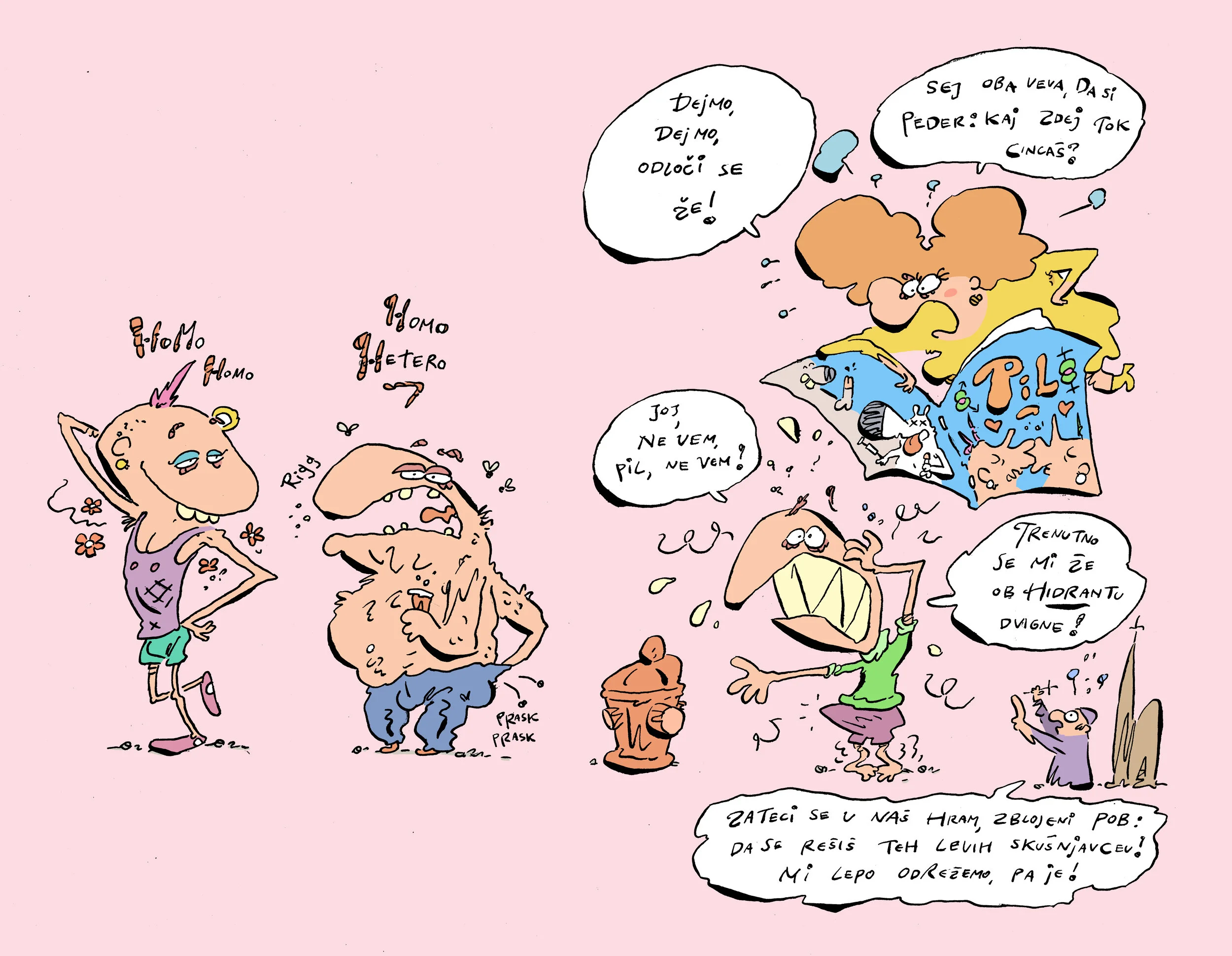 Tuširanka komentira trditev, da članek »So ti všeč fantje ali punce?«, objavljen v zadnji številki revije Pil, namiguje na direktno širjenje vrednot LGBT, kar kaže na to, da je revijo okužila agresivna promocija LGBTQ skupnosti.